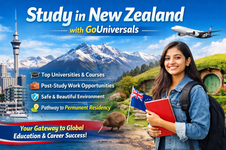 New Zealand is one of the most preferred destinations for international students, offering globally recognized qualifications, high academic standards, a safe environment, and excellent post-study work opportunities. At GoUniversals, we guide you at every step to make your dream of studying in New Zealand a reality.